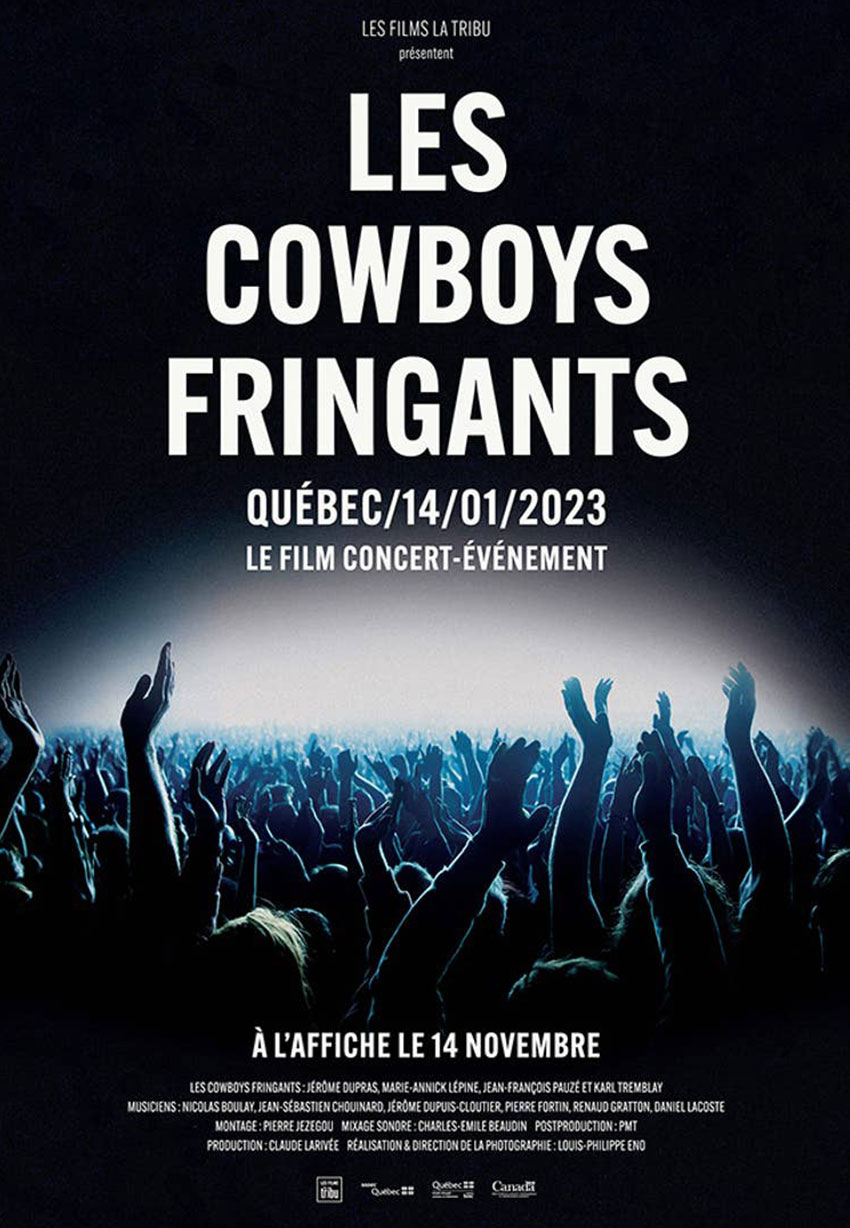 Les Cowboys Fringants comme vous ne les avez jamais vus! (Re)vivez l’ambiance magique d’un spectacle du groupe, comme si vous étiez sur scène avec eux. Vingt ans après la captation historique des Cowboys Fringants au Centre Bell en 2003, qui mettait fin à la tournée exceptionnelle de Break syndical, le groupe a récidivé en janvier 2023 avec un concert-événement filmé au Centre Vidéotron pendant la tournée Les Antipodes qui a brisé tous les records d’assistance et de vente de billets. Les Cowboys Fringants ont l’habitude des concerts à grand déploiement, eux qui ont rempli à pleine capacité et à maintes reprises le Centre Bell et le Centre Vidéotron, ainsi que des dizaines d’arénas en Europe francophone. Une foule festive, une communion incomparable avec le public, des fans visiblement émus, des images cinématographiques époustouflantes et les grands hymnes du groupe, cette nouvelle captation rappelle les films de concerts rock historiques!